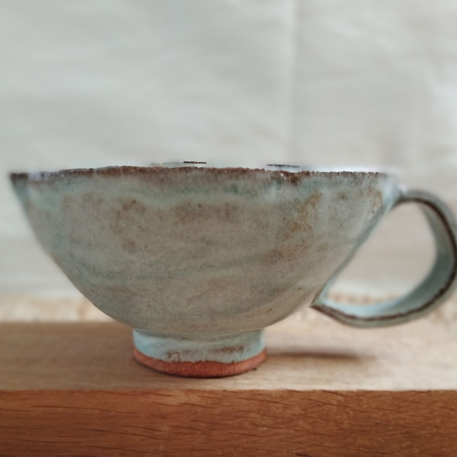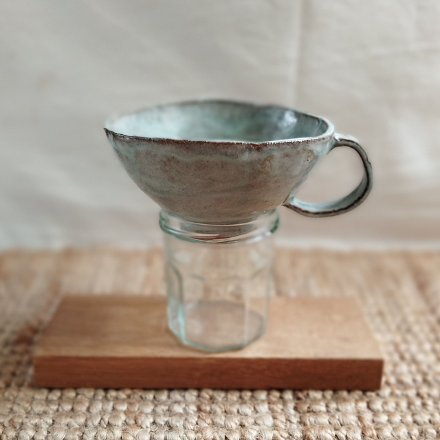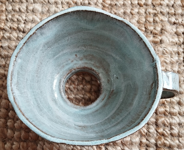 Entonnoir à confiture, argile rouge, émail bleu ciel
