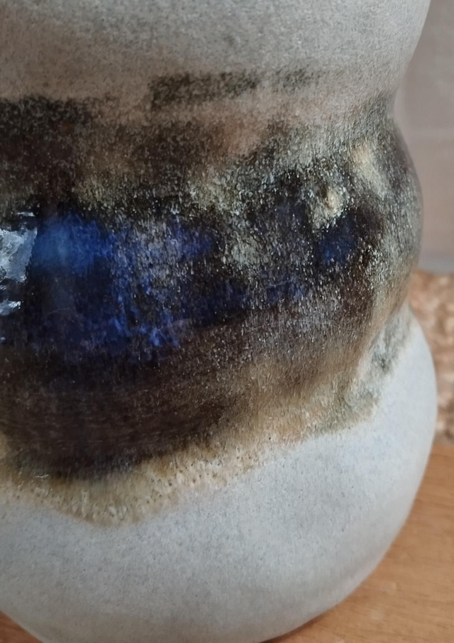 Grand vase ondulé, argile rouge, émail beige avec effets violets