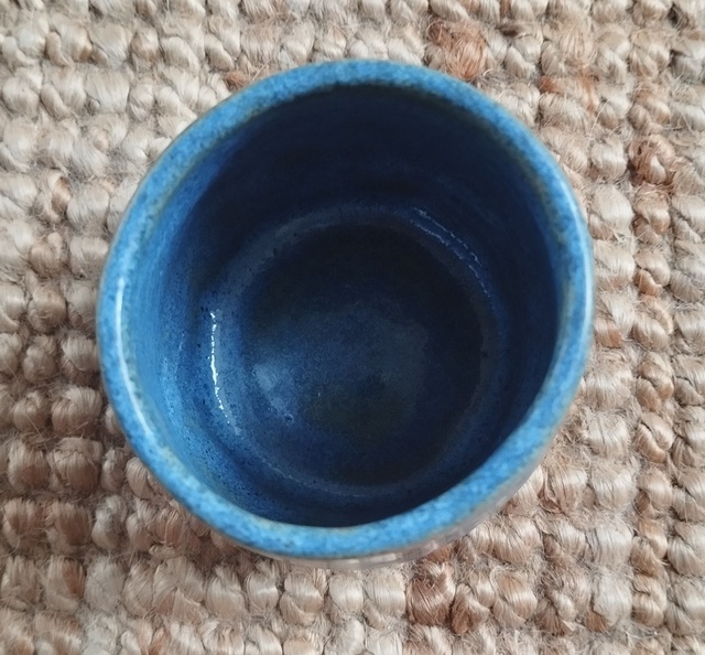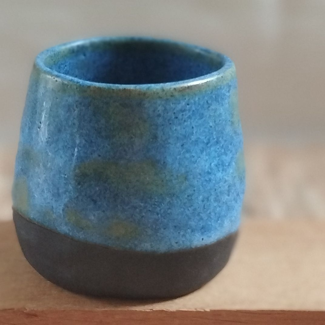 Petit cache-pot "panier", argile noir, émail bleu-vert